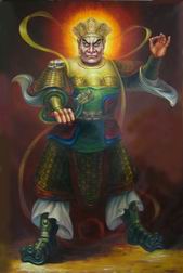 在《西游记》中的四大天王在仙班中的地位是高的,你看第五回中,“玉帝大恼,即差四大天王,协同李天王并哪咤太子”点起二十八宿等天兵天将就可知道,而且这四大天王隐隐然是监军角色,第五回的诗中说:“四大天王权总制,五方揭谛调多兵,李托塔中军掌号,恶哪咤前部先锋。”权总制和中军掌号是略有等同之处的。在第六回中,待二郎神到了天兵的营帐,“四大天王与李天王俱出辕门迎接”。四大天王竟排在托塔天王前面,可见其地位。其实在印度神话里,托塔李天王竟然就是拿伞的北方毗沙门天,也即多闻天天王,是居住在须弥山的山顶上方的众神之王因陀罗也即帝释天手下的四大天王之一。丁福保的《佛学大辞典》说他,“在佛教中为护法之天神,兼施福之神性。”他的形象有多种,一般是手持宝幡,用以引导众生,制服魔众。到了中国,帝释天演变为玉皇大帝,而四大天王中只有拿伞的多闻天王竟然又化出一位分身即托塔李天王,现在敦煌发现的多闻天王画像就是一手托塔的,可见人们对多闻天王的喜爱程度。